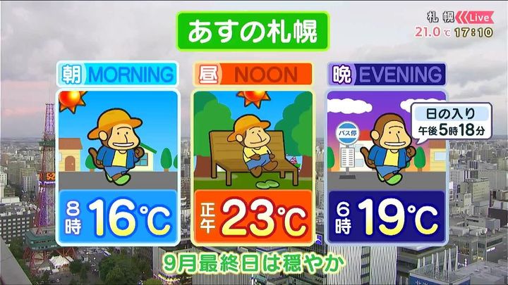 あす30日(火)の札幌です!朝昼晩の天気をもんすけでお伝えします!