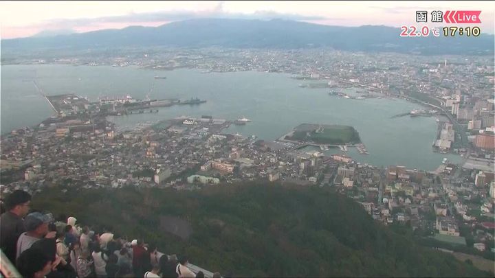 背景は29日午後5時ごろの函館情報カメラ