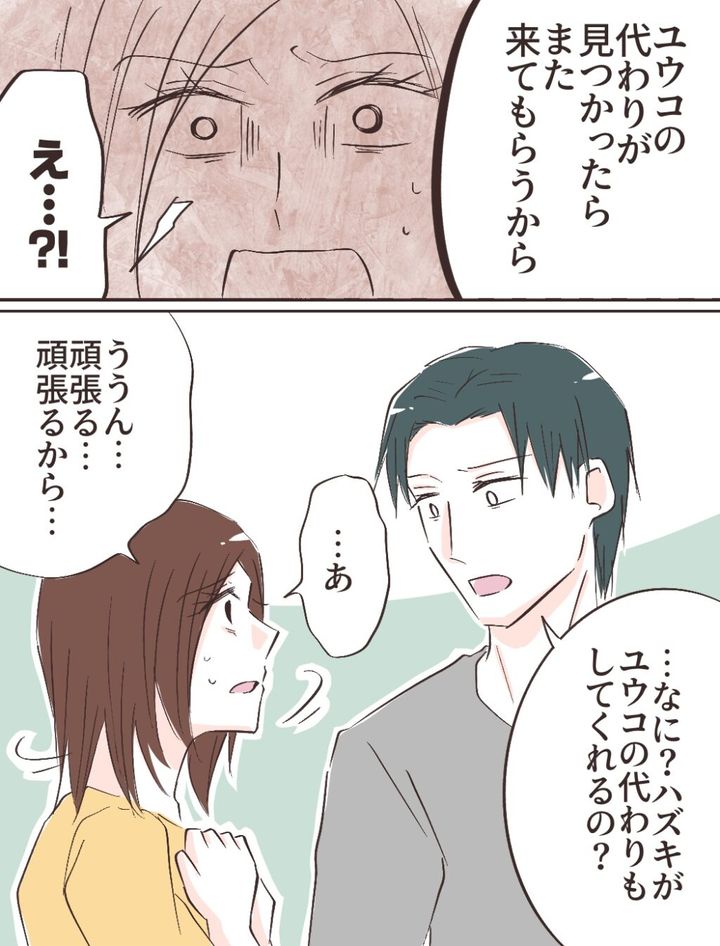 「ユウコの代わりが見つかったらまた来てもらう」夫の言葉に反論