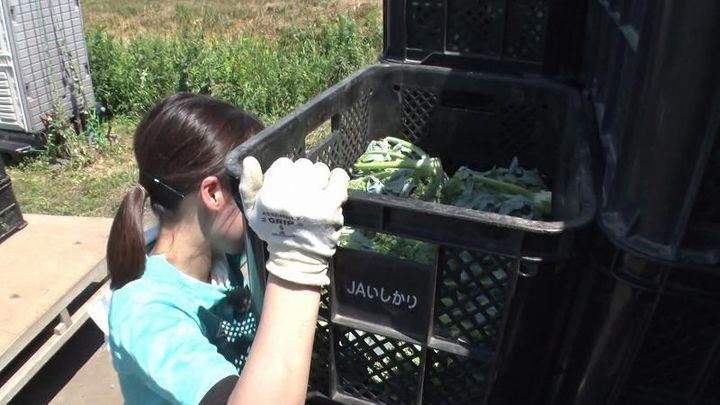 直売所に行ったあとは、再び畑に戻って農協出荷用のブロッコリーの運搬作業を1時間行います。