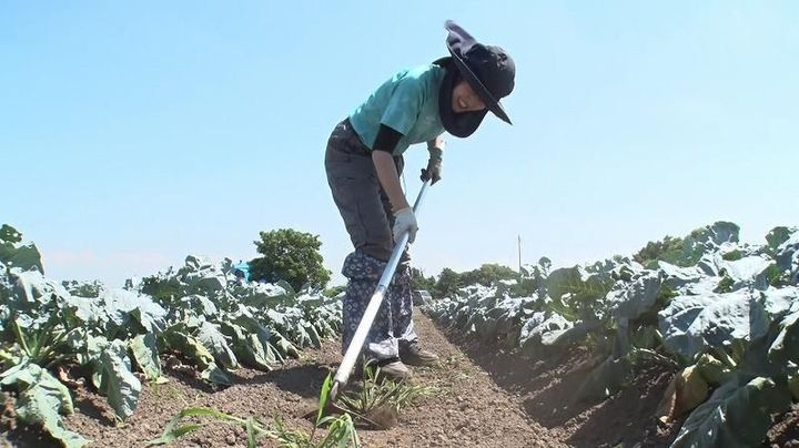 今後収穫を迎える赤ちゃんブロッコリーの畑で雑草の除去を1時間行います。
