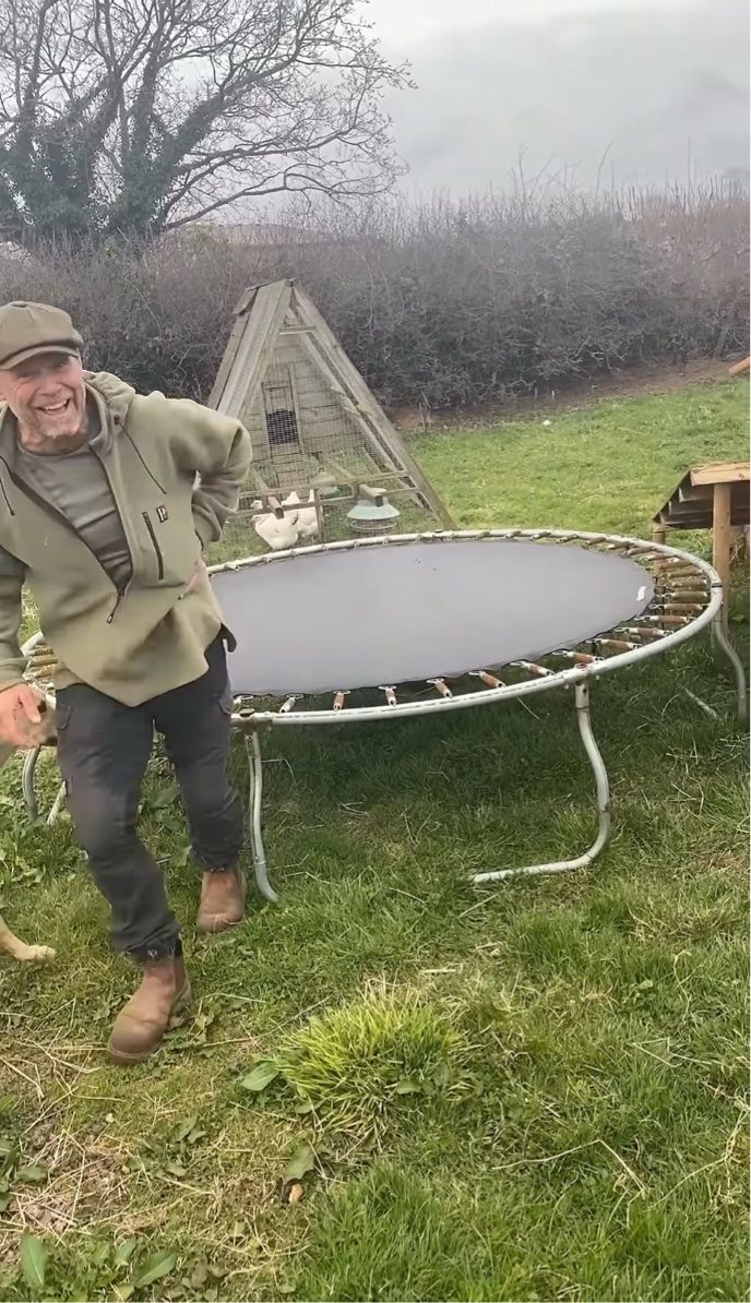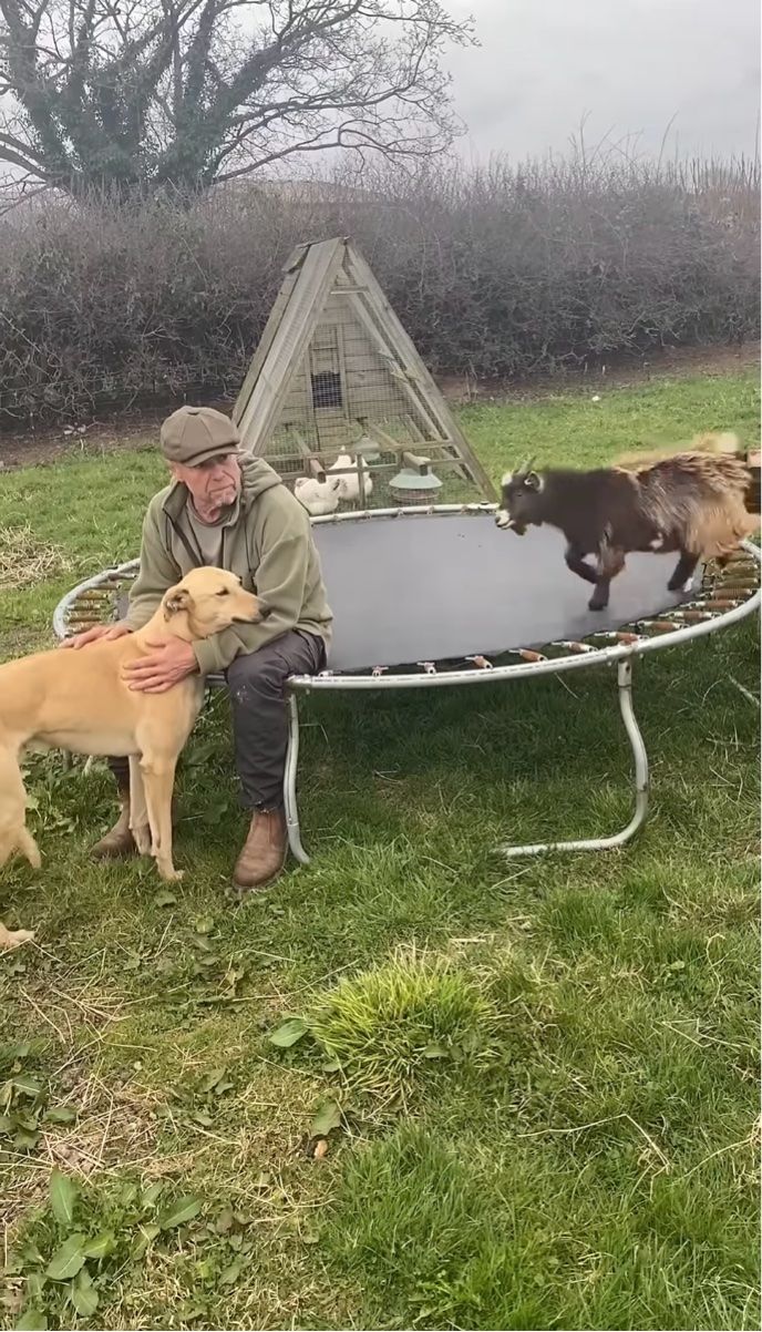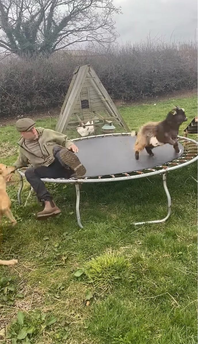 元気なヤギが飼い主さんに頭突き!?トランポリンの上でサプライズ発生!!【海外・動画】