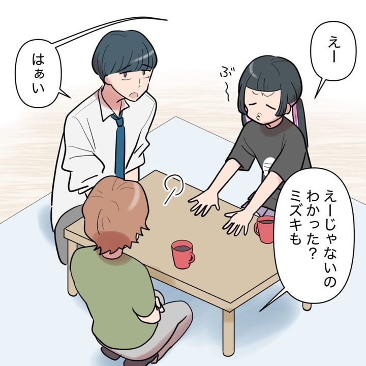 息子ミズキ君の彼女エリカちゃんが自分の知らない間にミズキ君の部屋の窓から出入りしていて6日も家に泊まっていたと知り驚愕したお母さん。二人にお説教をしつつ理由を聞くと、エリカちゃんは二人暮らしのおばあちゃんが入院してしまい寂しくて泊まりに来ていたことがわかりました。窓からの出入りやキッチンの無断使用もミズキ君が許可していたとはいえ、それに対して何の疑問も持っていない様子のエリカちゃん。あと2日間だけ泊まらせてほしいと2人にお願いされたお母さんは、別々の部屋で寝ることを条件に仕方なくお泊まりを許可し、他所の家の冷蔵庫を勝手に開けない、家主の不在中に一人で家に居ない、と当たり前のことを伝えると、エリカちゃんは「えぇ!?」と驚愕。そんなエリカちゃんの反応にお母さんも驚きます。