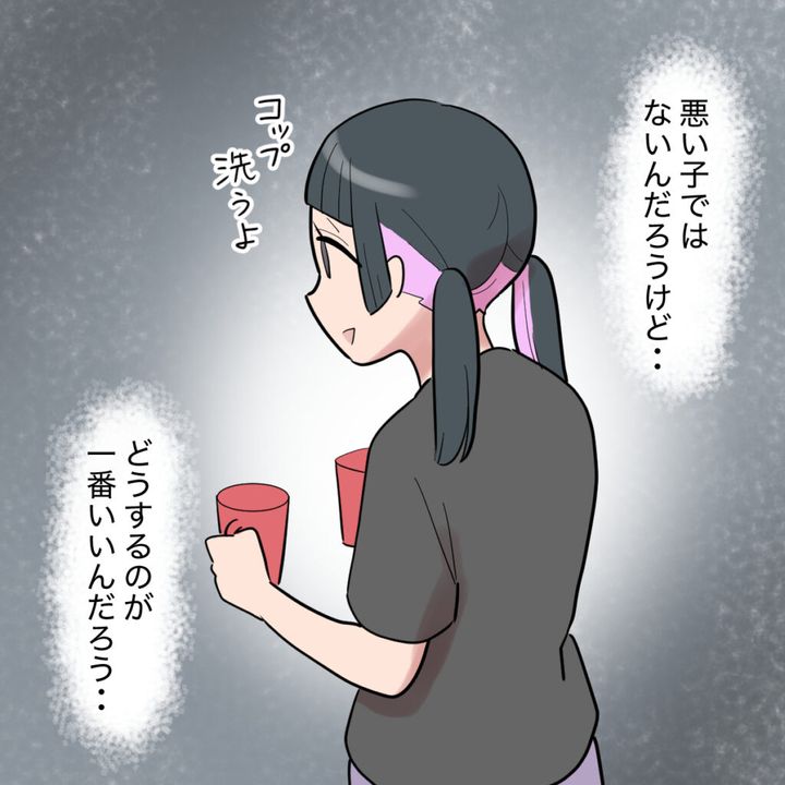 二階の窓から勝手に家に出入りして泊まっていた息子の彼女エリカちゃんに、これからはミズキ君と一緒に玄関から家に入るように伝えたお母さん。ミズキ君と一緒に来れないときはインターホンを鳴らすようにも伝え、このルールを破ったら二度とお泊まりはダメと釘を刺し、基本的にはお泊まりは反対であることも伝えました。ルールを渋々ながらも受け入れてくれた二人を見てお母さんがやれやれと立ち上がり夕飯の準備をしようとすると、すぐにエリカちゃんが「手伝う」と言って立ち上がりました。「コップ洗うよ」と率先してお手伝いするエリカちゃんを見て悪い子でないことはわかるものの、基本的には高校生カップルのお泊まりには反対のお母さんはどうするのが一番いいのだろうと悩みます。