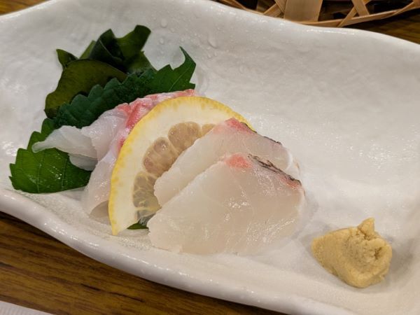 飾り切りされた刺身はプリプリで新鮮そのもの、分厚くて食べ応えもあります。