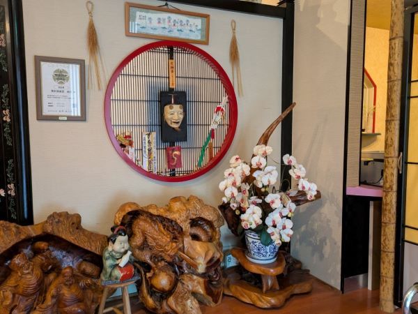 お客さんが多く席の様子は撮れませんでしたが、店内は素敵な絵画や置物、掛け軸などが多く飾られています。