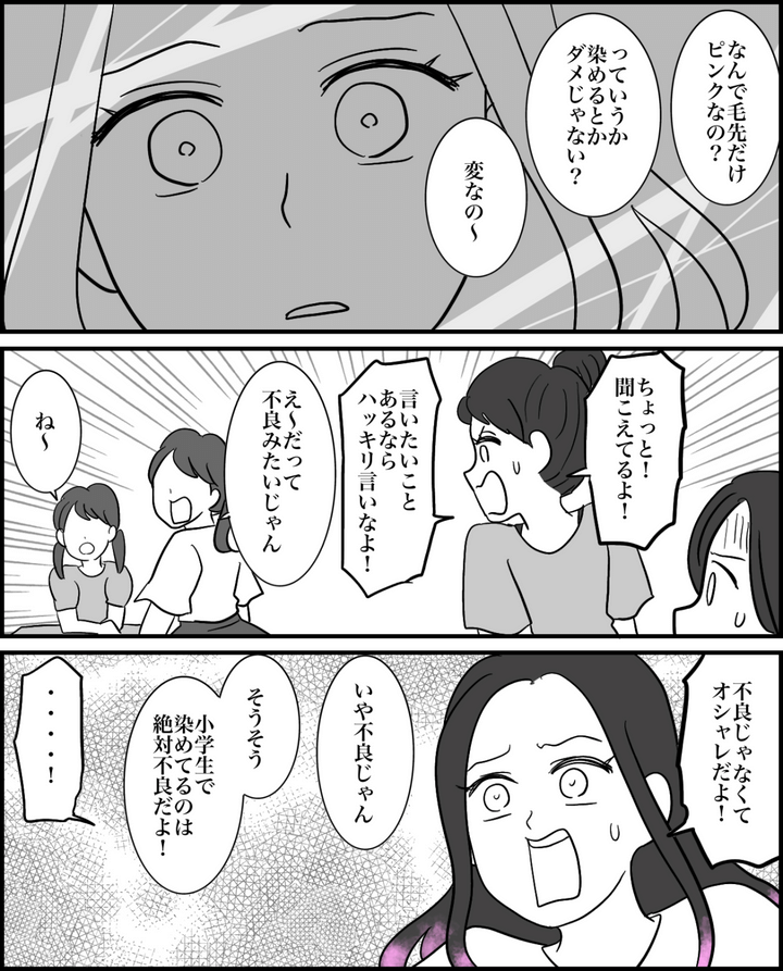 クラスの子に不良と言われてしまったルナ。落ち込んでいたので必死に励ましましたが、たかが毛先に色を入れたくらいで「悪いことをしている」ような扱いをされるなんて信じられません。