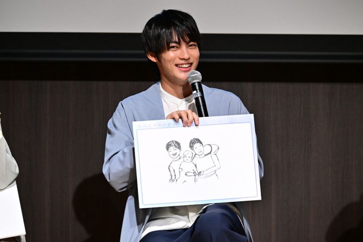 さらに会見の後半では、本作の重要なポイントとなっている絵を直筆で披露。誰しもにある、人生の宝物のような記憶に寄り添うストーリーにちなんで、“宝物のような記憶”を描いてもらうと、個性豊かなイラストやエピソードが飛び出した。