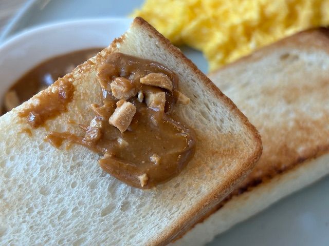 千葉半立落花生だけを使用した無添加のピーナッツペーストに、バターとはちみつをプラス。濃厚でコクがありながらも、優しい甘さで朝にぴったり。ペーストだけでなく、クラッシュされたピーナッツもトッピングされていて、食感も楽しめます。これは一度食べると忘れられないおいしさです。