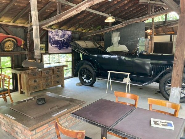 チケットを買って敷地に入ると、まずはガレージにあるクラシックカーが目に入ります。この武相荘の持ち主だった白洲次郎さんがイギリス留学中に乗っていた車とほぼ同一仕様のものだそうです。日本一かっこいいと言われた白洲次郎さん、ご存知ですか?