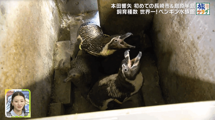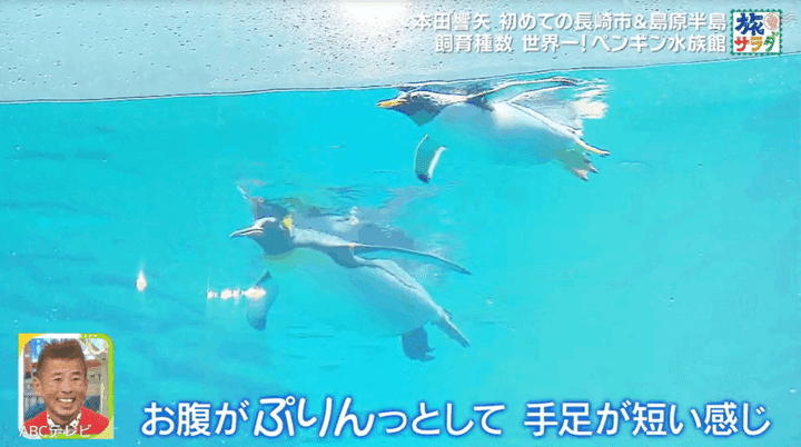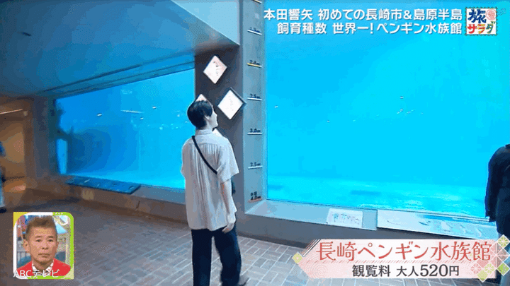 そんな人気急上昇中の本田は、『朝だ!生です旅サラダ』のロケで長崎県へ! 彼が、「愛してやまないかわいい子たち」に会いに行ったのは、⻑崎ペンギン⽔族館。地球上に生息する18種類のうち9種類を飼育する、ペンギンの飼育種数が世界一多い水族館だ。