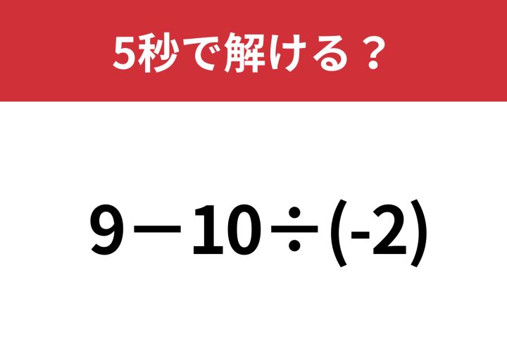 引っかからず解ける人は少ない!?「9−10÷(-2)」5秒で解ける?