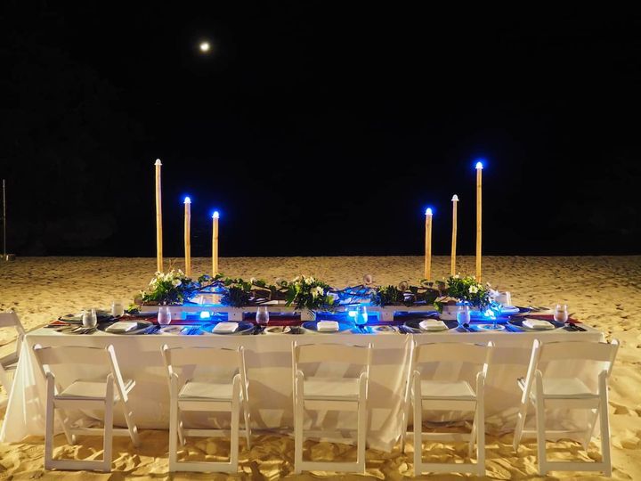 ホテルでは、ビーチサイドでディナーを頂けるアレンジも可能。海の音を聞きながら、月明かりの下でロマンチックディナー。素敵な夜を美味しい料理と共に味わって。