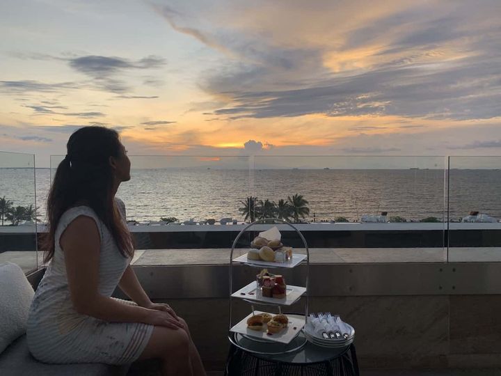 夕方近くになったら、ホテルのC’Loungeへ。コンラッドマニラはホテルの目の前が海なので、オーシャンビューの素敵なサンセットを堪能できます。美しい夕日を眺めながら美味しいカクテルを一杯。