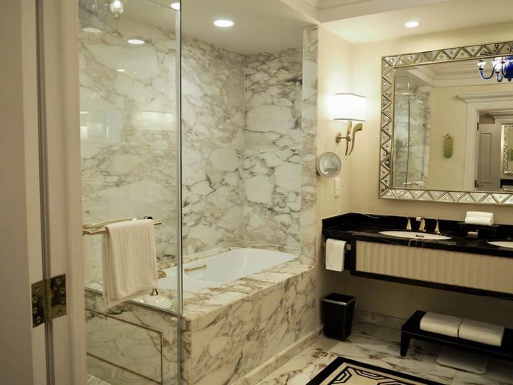 大理石をイメージして造られたバスルームは高級感たっぷり。