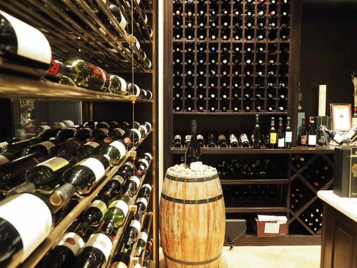 店内にあるワインセラーには、数え切れないほどのラベルのワインが。