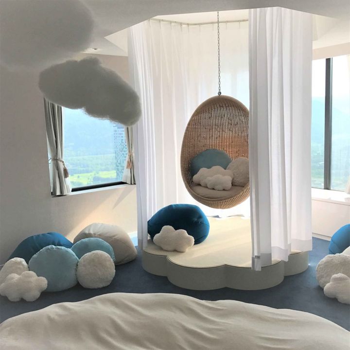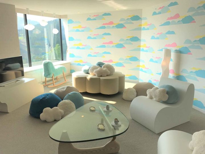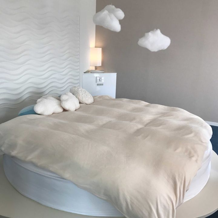 1日1組(2名)限定!かわいすぎる「雲スィートルーム」に潜入!雲ガールステイプランで宿泊できるお部屋がこちら。扉を開けた瞬間「ひゃー♥」と叫んでしまうくらい、非日常感が半端ない。かわいすぎます。