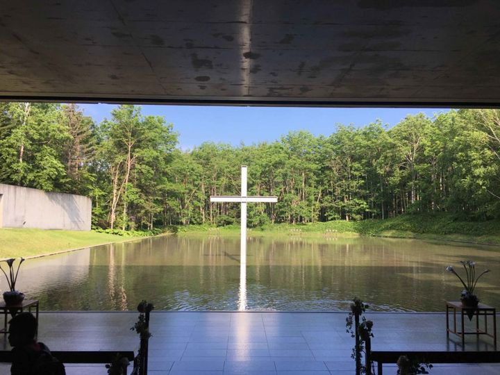 建築家・安藤忠雄設計の水の教会。白樺の森に囲まれた空間は、とても幻想的。