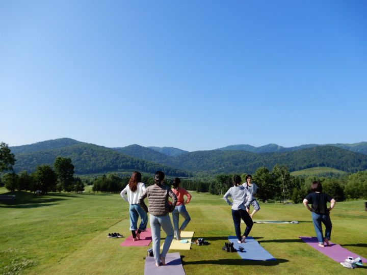 こちらは朝に参加したリゾナーレトマム宿泊者限定の草原ストレッチ。ストレッチだけでも十分気持ちがいいのですが、高い青空と目の前に広がる深い緑の絶景で、リフレッシュ効果が倍増。毎朝こんな健康的なスタートが切れたら…。