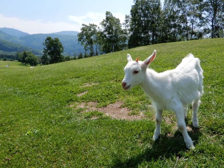 敷地内で飼われているヤギと触れ合うこともできます。真っ白な子ヤギを発見♥