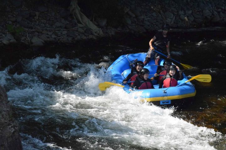 ずっとやってみたかったラフティングを初体験。はじめはのんびりと、ジブリの世界に迷い込んだような絶景を楽しんでいたのですが…