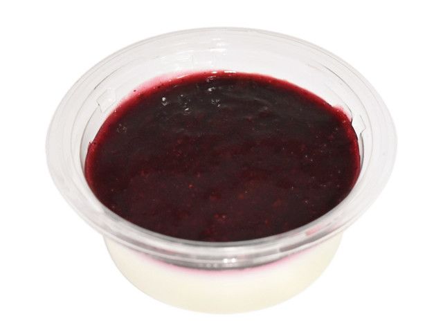 甘味と酸味のバランスが良い余市産ブルーベリーのソースを添えたレアチーズケーキです