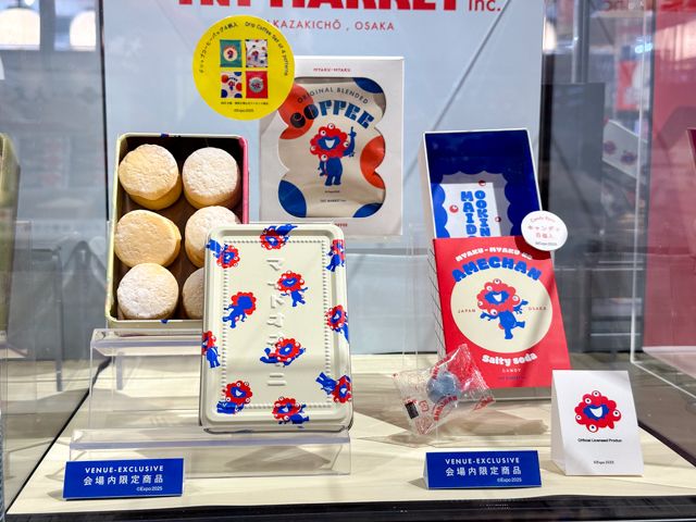 そのほか、大阪・中崎町のレトロ喫茶「太陽ノ塔」やパティスリー「太陽ノ塔 洋菓子店」を展開する「TNT MARKET」からは、レトロかわいい「クッキー缶」や「ミャクミャクドリップコーヒー」もラインナップ。どれも“パケ買い必至”のお土産です。