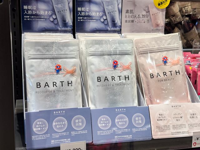 スイーツだけでなく、美容アイテムも「ミャクミャク」とコラボレーション。BARTH「薬用中性重炭酸入浴剤 9錠」、saborino「朝用マスク」など、普段使いできる人気アイテムが限定パッケージで販売。