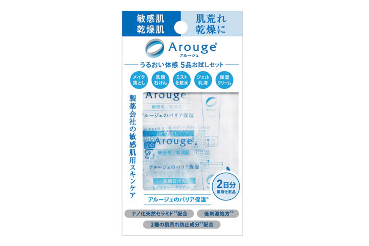 「まずは一度試してみたい!」という方には、アルージェのやさしさと保湿力を体感できるお試しセットもおすすめ。メイク落とし、洗顔石けん、化粧水、ジェル乳液、保湿クリームがお試しできます。旅行やジム用にも◎。