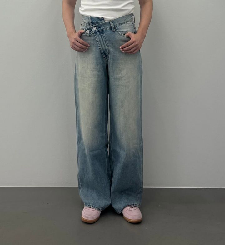 気になる腰まわりもカバーできる洒落たデザインが魅力的な「CROSS WAIST WIDE STRAIGHT」