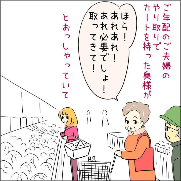 今回は、読者から寄せられたエピソード。スーパーに買い物に来ていた年配の夫婦のやり取りが気になったそうで…?