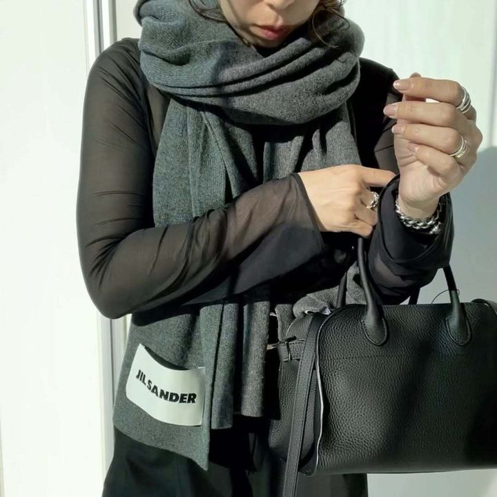明るめのグレーのストール。ジョンストンズにはこういったシンプルなアイテムもあります。単色で無地のデザインなので合わせるファッションを選びません。ベーシックなカラーであれば、オフからフォーマルなシーンまで幅広く使えます。