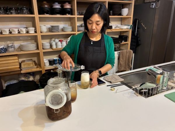 「ちょっと薬草みたいでしょ!」と、笑顔で話すのはトキタビCAFEを運営している重松さん。この日頂いたジンジャーソーダのシロップは重松さん自家製で、10日ほど漬け込まれたものです。ほんと~に美味しかったです!