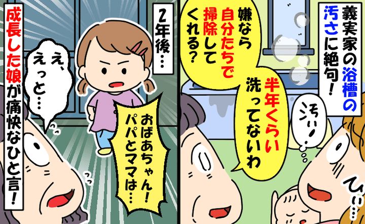 「家中の掃除をお願い」半年洗ってない義実家の風呂に絶句。2年後…私をこき使う義母に娘が痛快なひと言