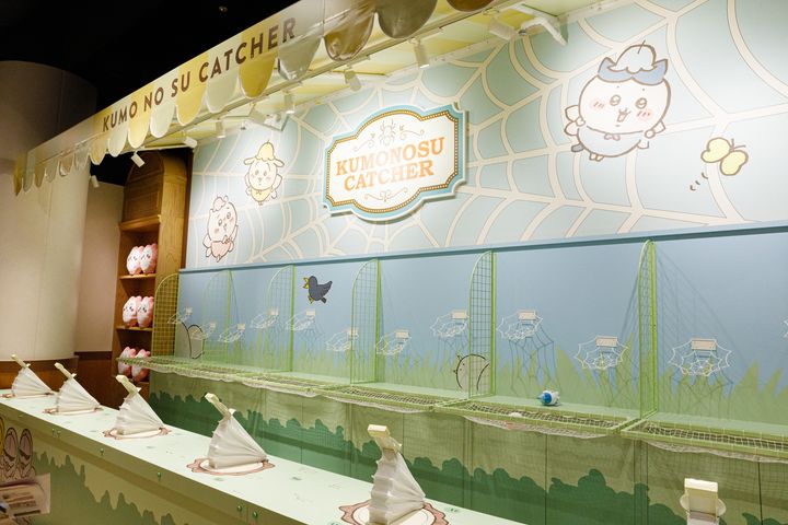 「くものすキャッチャー」は、妖精のちいかわたちをくものすに向かって飛ばし、捕獲するというもの。「ミートボールころがし」は、ミートボールが穴に落ちるように狙いを定めて転がして。クリアできなくても参加賞がもらえる。