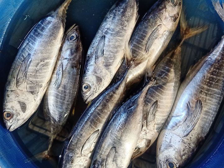 fresh skipjack tuna in ice water