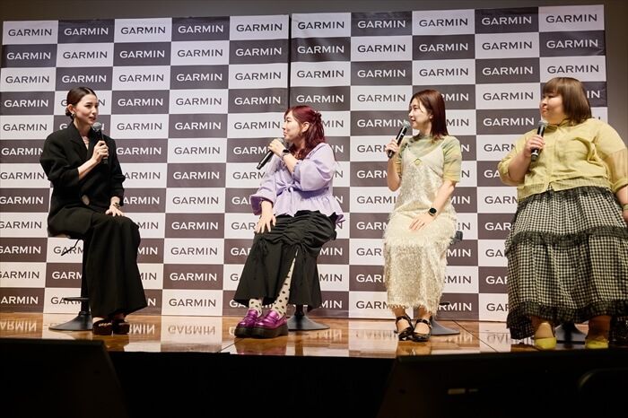 また、さらに進化した新たなGarminスマートウォッチにちなんで「最近、進化したことは?」という質問には、「日々、体重は進化しています」と明かしたかなでが「今後は、Garminで体重を退化させていきたいなと思います」と続けると、会場は再び爆笑。出産後も、変わらぬスタイルをキープしている朝比奈も「Garminのおかげです!」と笑顔を見せた。