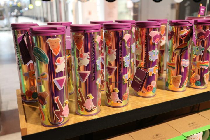 さらにレインボーフラッグと渦巻くピンクと赤のストローでプライドマーチを表現した、ステンレススチール製コールドカップもキュート!