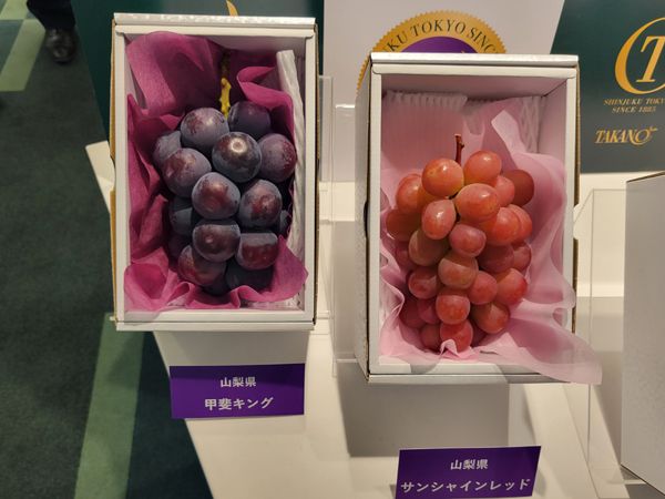 山梨県からは、鮮やかな赤色と華やかな香りが特徴の「サンシャインレッド」と、1粒平均20g以上という大粒が目を引く「甲斐キング」。いずれも山梨県オリジナル品種です。