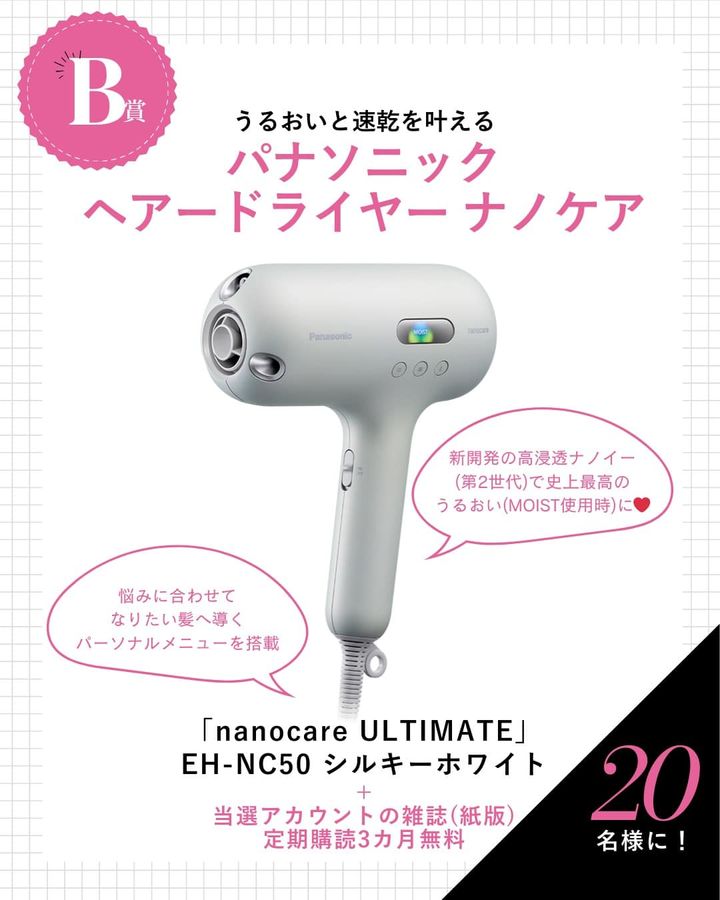 <B賞> 「パナソニック ヘアードライヤー ナノケア」+「定期購読3カ月無料」を20名様にプレゼント