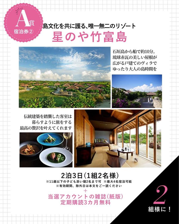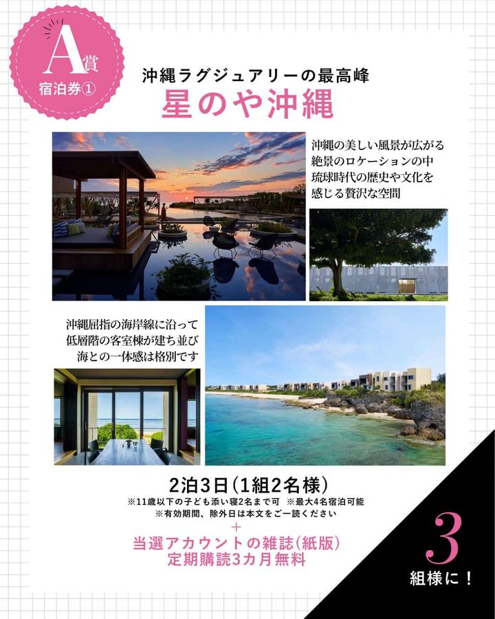<A賞> 「沖縄・京都 宿泊券」+「定期購読3カ月無料」を10組様にプレゼント