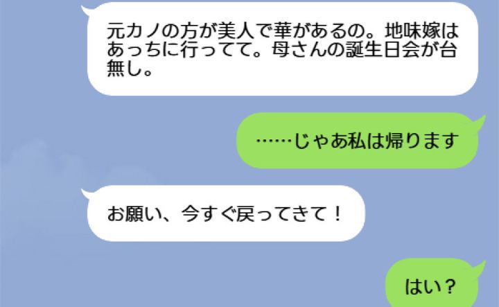 「元カノの方が美人で華があるの。地味嫁はあっちに行ってて」