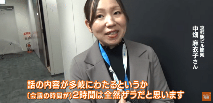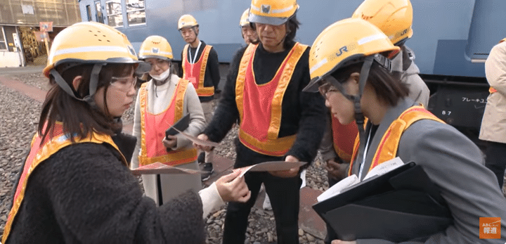 打ち合わせの中心にいる2人の女性は、プロジェクトのリーダーで「京都駅ビル開発」の中畑麻衣子さんと、車両の改造の指揮を執る「JR西日本」の戸島美咲さん。車内や運転席を見ながら、改装に必要なポイントをしっかりと確認していきます。