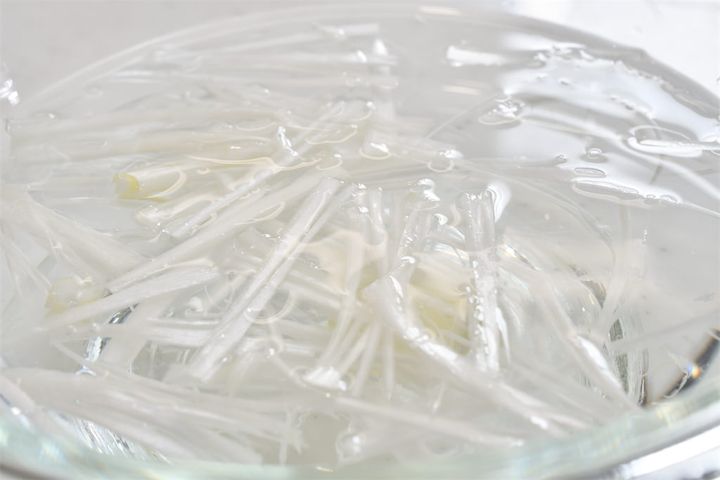 4. 冷水(または氷水)につけて辛味を抜く。