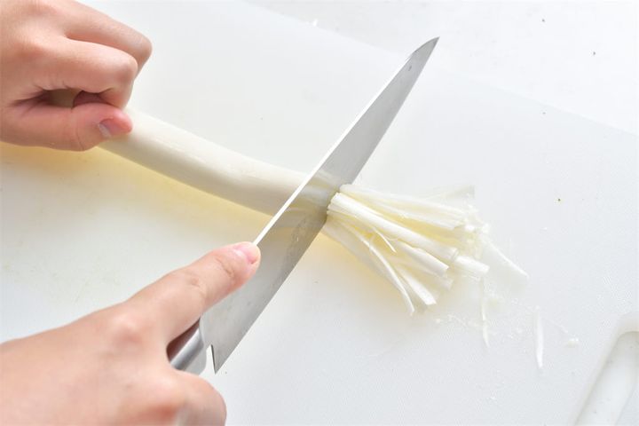 ただ、包丁で刻もうとすると、長ねぎの白い部分を切り出して、繊維に沿って細く切る…と、かなり手間がかかります。