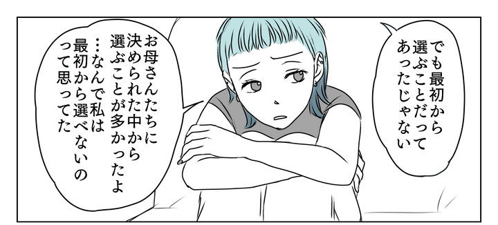 母は「最初から選ぶことだってあったじゃない」と言いますが、あったとしても数えるほど。大抵は親に決められた中から選ばされていたのです。