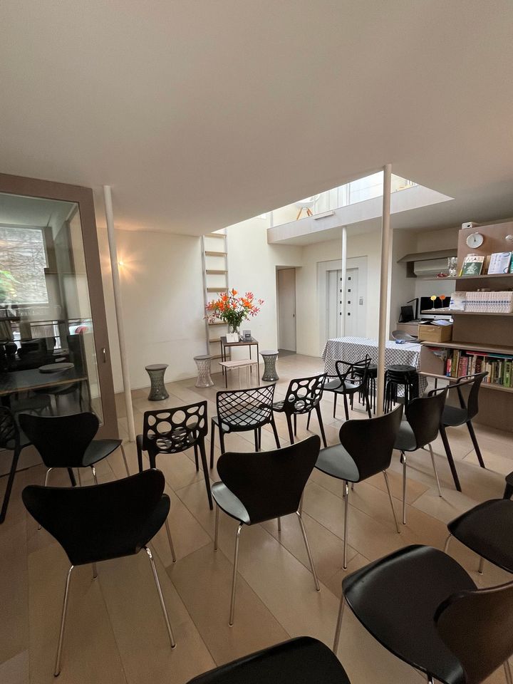 現在もプライベート空間とパブリック空間が地続きにあるサロン併設住居に住み、イベント等を開催する。