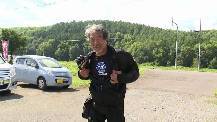 「ちゃんと着ていますよ!」と話すライダーの皆さんは、道道の標識がプリントされた、おそろいのTシャツを着ていました。