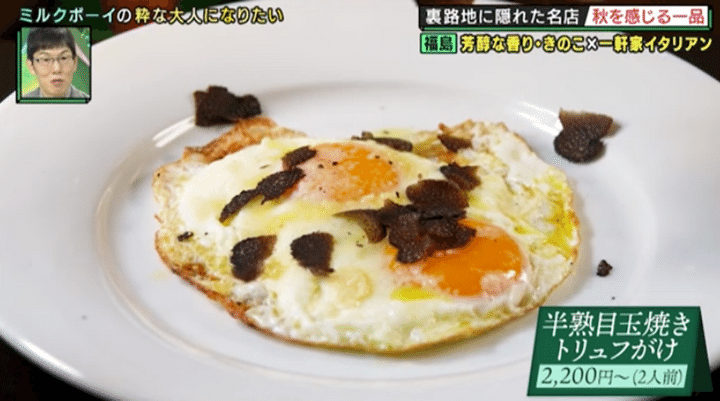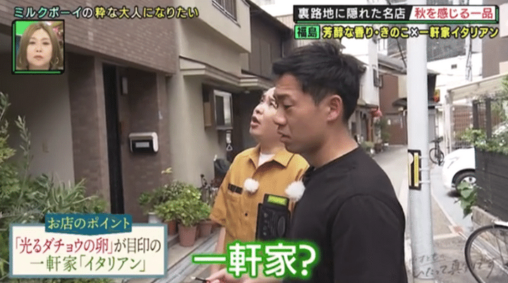 「あまから手帖」の江部編集長が教えてくれたのは、大阪・福島にあるお店。「光るダチョウの卵が出迎える」という謎のヒントを手がかりに路地裏をさまよったミルクボーイは、たしかに“ダチョウの卵”に見えなくもない物体が光を放つ一軒家を発見する。そこは、ご夫婦が営むイタリアンレストラン。秋のオススメ食材「トリュフ」の芳醇な香りが「一番合う」というイチオシは、超シンプルなあのメニューで…。粋な大人を虜にする、トリュフによく合う意外な料理とは?