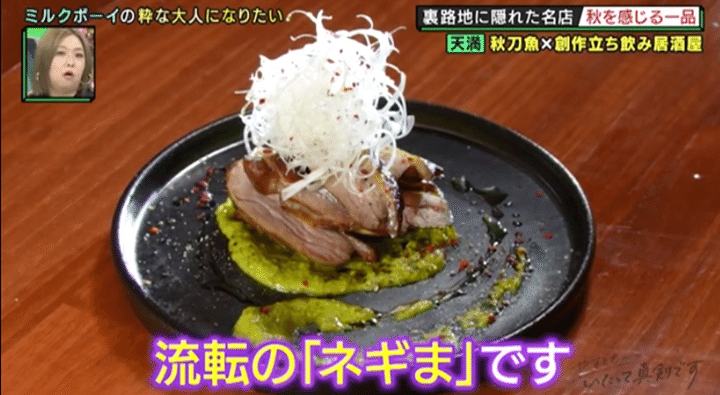 「SAVVY」の編集長・秦さんが教えるのは、大阪・天満の粋なお店。どう読んでいいやら迷う不思議な文字が書かれた“ちょうちん”が目印の立ち飲み屋さんで、店主自慢の一風変わった創作料理が楽しめるという。1品目のメニューは「ネギま」。焼き鳥の“ねぎま”をイメージしていた2人は、それとはまったく似ても似つかない見た目の料理に度肝を抜かれ…。さらに、秋の味覚のサンマを使った豪華な一皿や、粋なネーミングセンスが光るパスタなどを堪能!